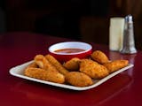 Breaded mozzarella cheese sticks coated with spicy cajun seasoning